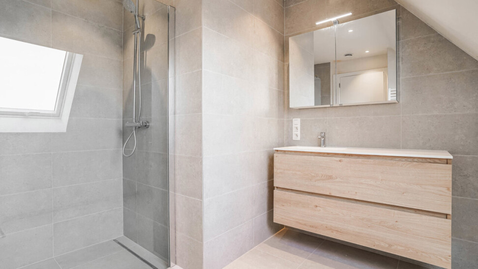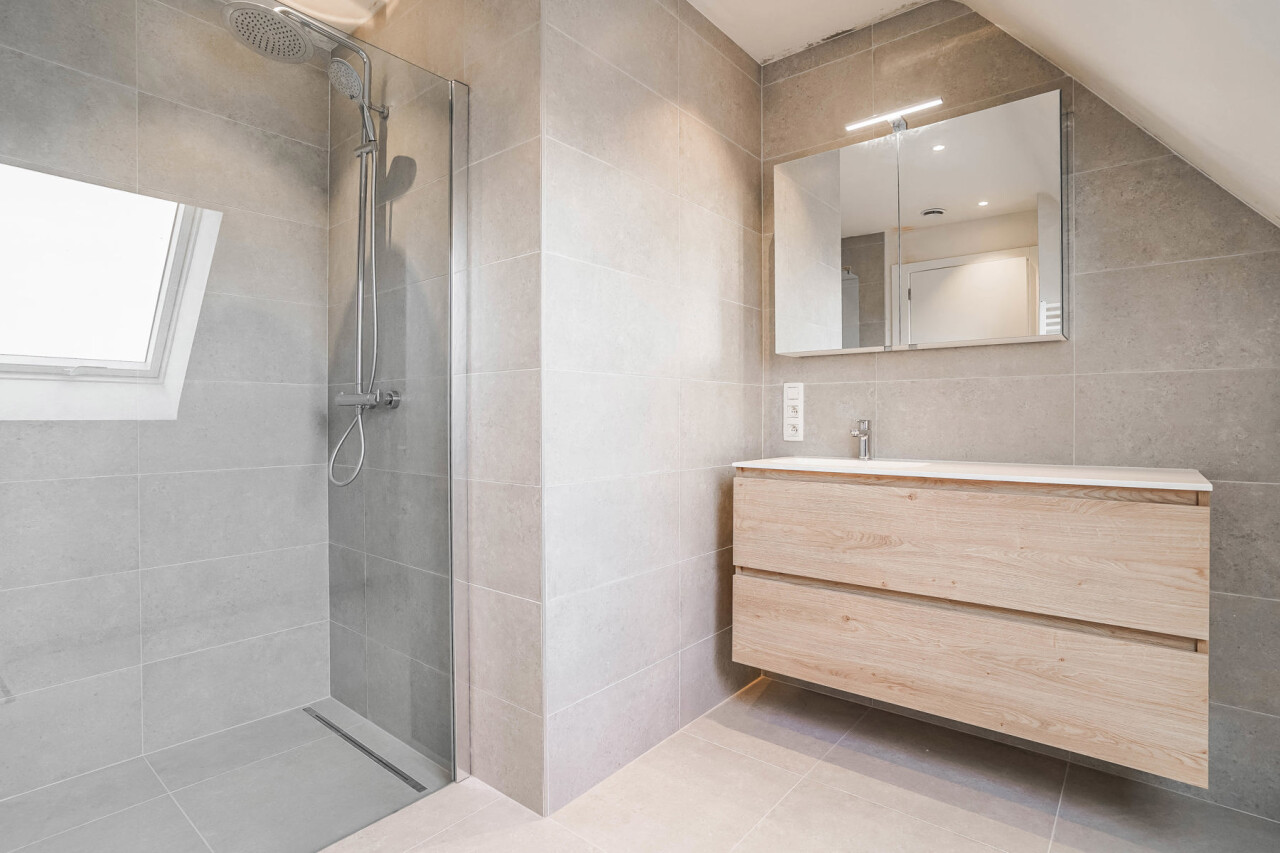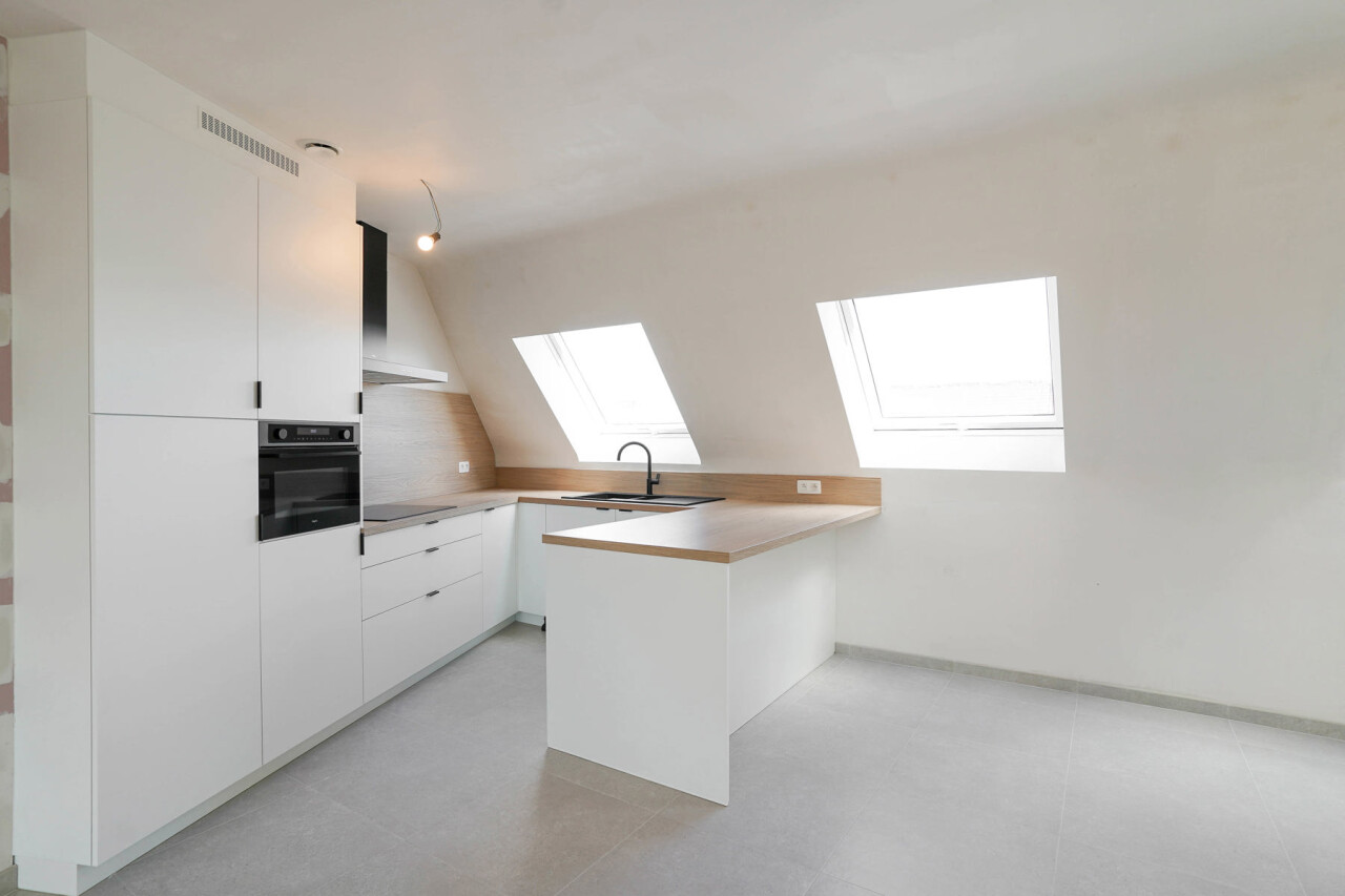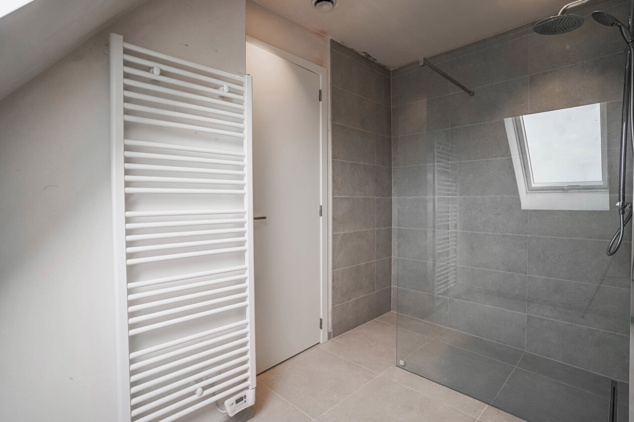 In het centrum van Kapelle-Op-Den-Bos kan je dit moderne en zeer kwalitatieve nieuwbouw duplex appartement terugvinden. Door de aanwezigheid van een warmtepomp met vloerverwarming en mogelijkheid tot koeling, ventilatie D en zonnepanelen ben je verzekerd van een uiterst energiezuinig BEN appartement (E9). Dankzij de zeer gunstige, centrale ligging heb je op wandelafstand o.a. de wekelijkse markt, winkels, scholen en openbaar vervoer. Bovendien bevindt zich op slechts 500m een treinstation en op slechts 5min de A12 Brussel-Antwerpen. Het appartement is gelegen op de 2de en 3de verd., beide zijn te bereiken met (privatieve) lift, idem voor de ondergrondse parking en kelder. Met een ruime bewoonbare opp. van 104m² heeft het appartement volgende indeling op de 2de ver.: inkomhal met toilet, praktische berging/wasplaats, een ruime en lichtrijke leefruimte met directe toegang tot het gezellige en zonnige terras (ZW-24m²) met muggenraam, een prachtige open keuken met kwalitatieve toestellen en een extra bergruimte. Op de 3de verd. die dus bereikbaar is via de lift, vind je 2 slaapkamers, badkamer met lavabo en inloopdouche, berging en apart toilet. Eveneens inbegrepen is een ondergrondse parkeerplaats, een privé kelderberging en een gemeenschappelijke fietsenstalling op het gelijkvloers. Kortom, aan ruimte en bergplaats geen gebrek. 75€ gemeenschappelijke kosten/maand. Beschikbaar in overleg met de eigenaar (vanaf 06/11/2025). Bezoekaanvraag per email via www.immorottiers.be