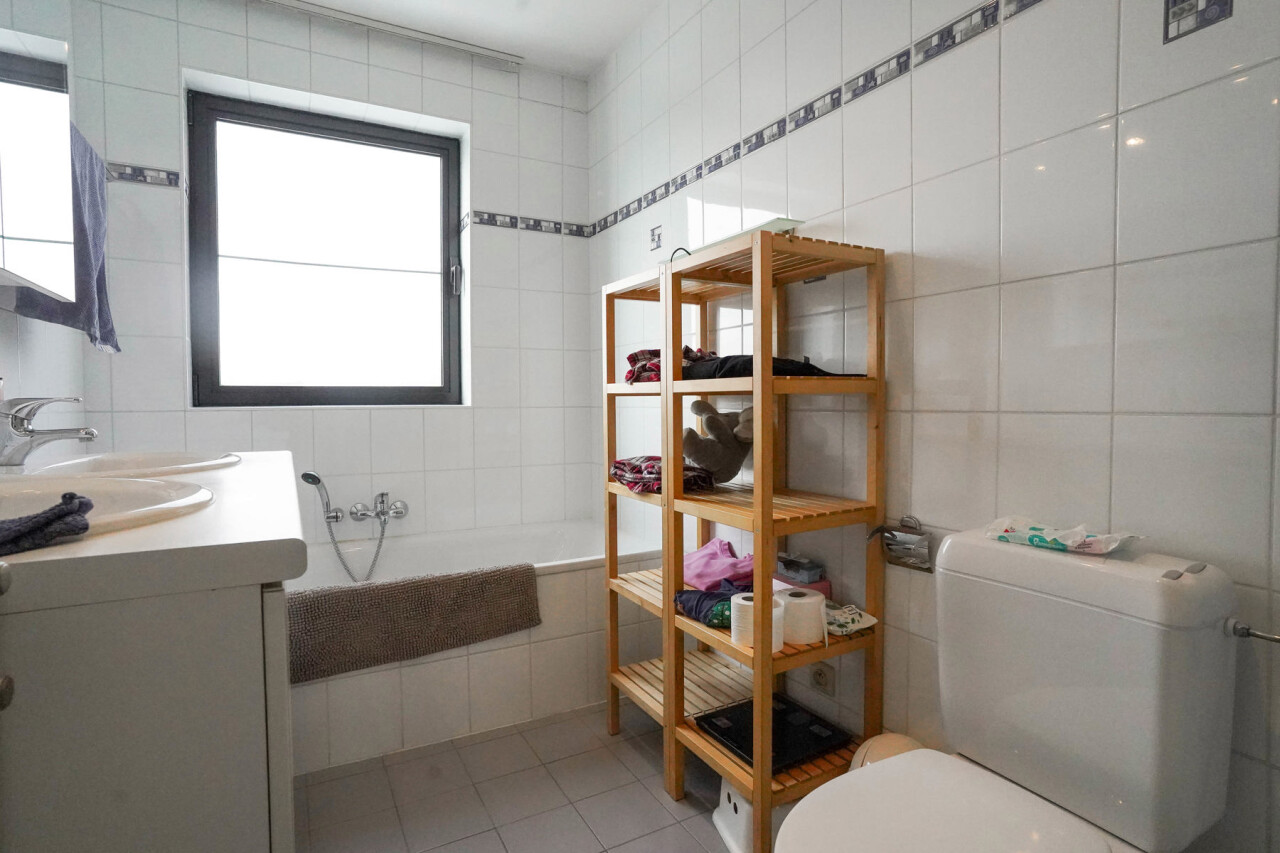 Dit lichtrijke duplex appartement is gelegen op de eerste verdieping, vlakbij het centrum van Londerzeel. Het appartement is uitstekend gelegen op slechts twee minuten van de autosnelweg Antwerpen Brussel en bevindt zich op fietsafstand van verschillende scholen en winkels. De indeling van het appartement is als volgt: op de eerste verdieping bevindt zich een inkomhal met gastentoilet, een ruime woonkamer met grote raampartijen die uitgeven op een zonnig terras van ca. 50 m² (zuidoost georiënteerd), een open keuken en een praktische berging. De tweede verdieping omvat een ruime badkamer uitgerust met een douchecabine, ligbad, dubbele wastafel en toilet. Daarnaast zijn er twee volwaardige slaapkamers en een handige stapelzolder. Het appartement wordt centraal verwarmd op aardgas. Extra troeven: het elektriciteitsverbruik is inbegrepen in de huurprijs via de aanwezige zonnepanelen en achteraan bevindt zich een private autostaanplaats en een overdekte fietsenstalling. Geen gemeenschappelijke kosten. Beschikbaar ten laatste vanaf 01/06/2026. Bezoekaanvragen per email via www.immorottiers.be