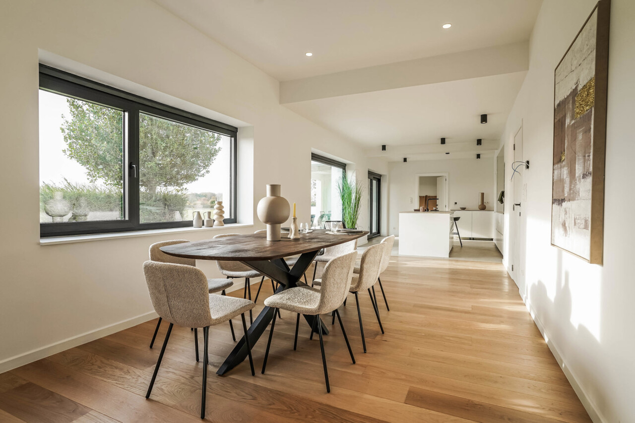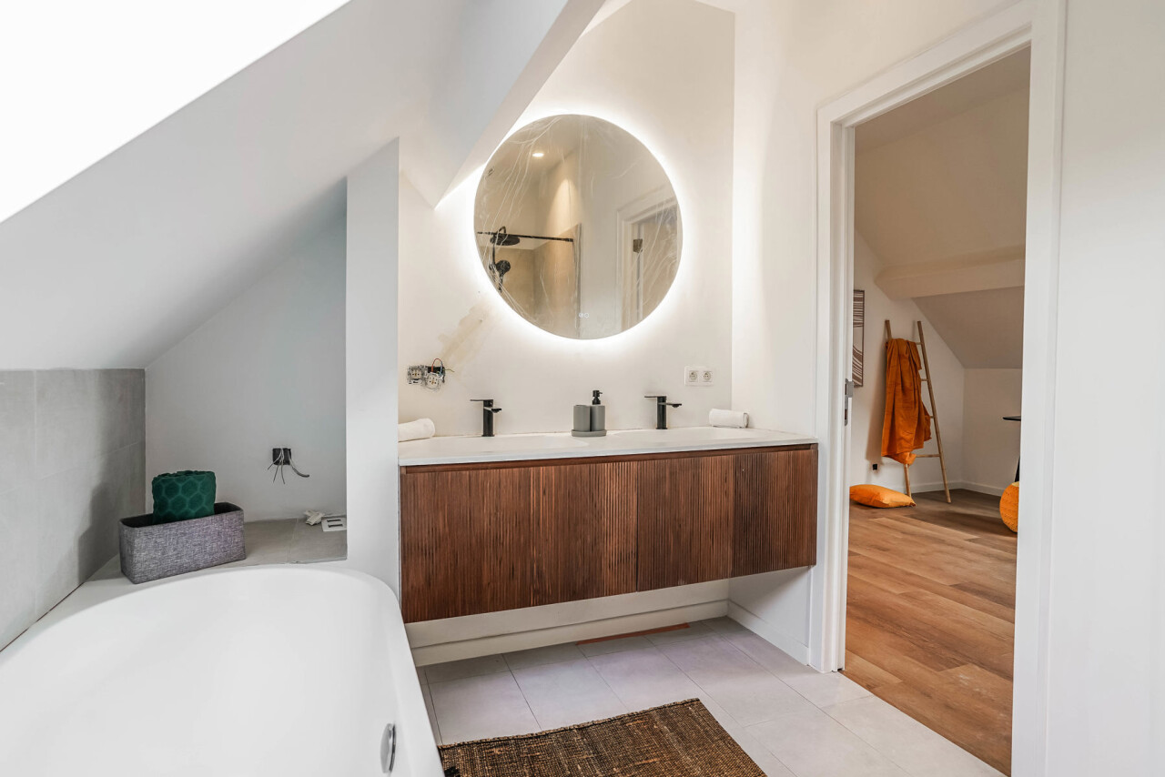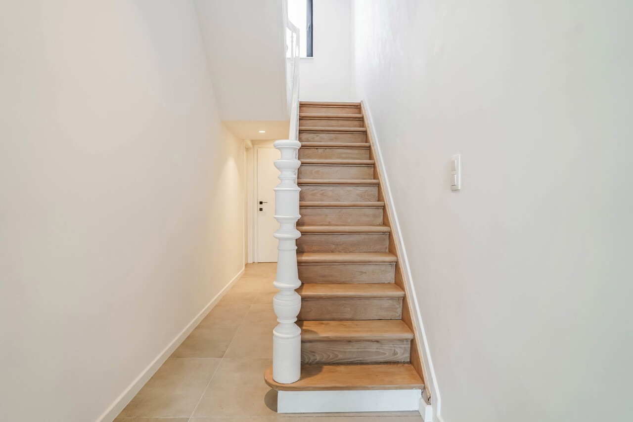 Op zoek naar een instapklare, zéér energiezuinige halfopen woning op een fantastische locatie? Dan voldoet deze woning gegarandeerd aan al jouw verwachtingen. Het voorbije jaar werd ze volledig getransformeerd tot een hoogwaardige (ver)nieuwbouw (EPC A), afgewerkt met oog voor detail en voorzien van alle moderne comfort. De locatie is werkelijk uitzonderlijk: achteraan in een doodlopende straat, zonder doorgaand verkeer, waar je optimaal geniet van rust en een prachtig uitzicht over de omliggende velden. Op wandel- en fietsafstand vind je openbaar vervoer, winkels, scholen en het station van Londerzeel. Kortom: een absolute topligging! Met een bewoonbare oppervlakte van 177 m² is de indeling perfect doordacht. Op het gelijkvloers bevindt zich de stijlvolle inkomhal, een gasten toilet, een zeer ruime leefruimte met open keuken, berging/wasplaats en technische ruimte. Op de 1ste verdieping heb je 2 slaapkamers en een badkamer met douche en toilet. Op de 2de verdieping bevindt zich de ruime master bedroom met ensuite badkamer, uitgerust met douche, ligbad en toilet. Extra troef? De woning beschikt over 2 parkeerplaatsen, een prachtige Z(W)-gerichte tuin en een fantastisch terras. Het overdekte gedeelte van het terras biedt de ideale plek om te genieten van lange, zonnige avonden met zicht op het omliggende groen. Deze woning is uiterst energiezuinig en volledig klaar voor de toekomst, met een mooi EPC-label A. Dit dankzij onder meer lucht-water-warmtepompen met vloerverwarming, zonnepanelen en airconditioning. Mis deze zeldzame kans niet! Alle plannen en een videorondleiding zijn terug te vinden op onze website www.immorottiers.be. Bezoeken zijn enkel mogelijk na afspraak per email op info@immorottiers.be
