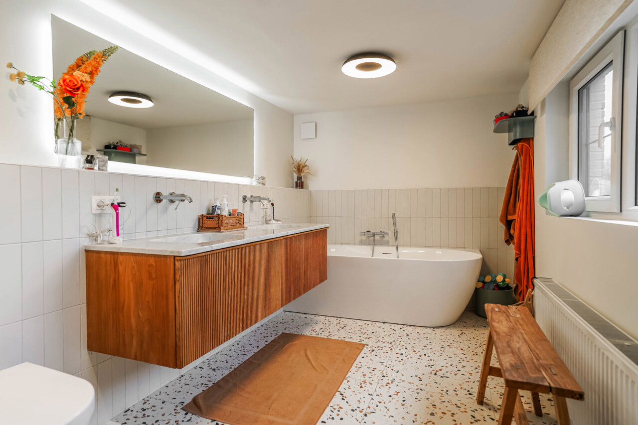 Vlakbij het centrum van Breendonk bevindt zich deze knappe halfopen woning, perfect instapklaar én afgewerkt met oog voor kwaliteit en comfort. Met een bewoonbare oppervlakte van 199 m² op een perceel van 596 m² met ruime garage biedt deze woning ruimte, licht en een aangenaam woongevoel. Op het gelijkvloers kom je binnen via een compacte inkomhal die uitgeeft op een ruime, lichtrijke leefruimte (42m²) met gezellige zit- en eethoek en een mooie parketvloer. De moderne, volledig ingerichte keuken beschikt over kwalitatieve toestellen en voldoende opbergruimte. Verder is er een apart toilet en toegang tot de traphal met praktische extra ingemaakte kasten. De 1ste verdieping telt 2 ruime slaapkamers, een leuke dressing en een prachtige badkamer met dubbele lavabo, ligbad, ruime douche en toilet. Op de 2de verdieping bevindt zich een zeer ruime 3de slaapkamer, ook ideaal als master bedroom of hobbyruimte en met een compacte stockageruimte. Buiten geniet je van een ruime en zonovergoten tuin, terwijl parkeerruimte geen probleem vormt dankzij de oprit en de ruime garage, beide afgesloten met enerzijds een nieuwe stijlvolle toegangspoort en de garage met een elektrische sectionaalpoort. Extra troeven zijn het zeer gunstige EPC B label, de zonnepanelen, de airco-units, de conforme elektriciteit, de nieuwe ramen...en ook de platte daken worden eerstdaags nog vernieuwd door de verkopers. Kortom: een stijlvolle én energiezuinige woning op een rustige, maar vlot bereikbare locatie. Alle attesten en een videorondleiding vind je op www.immorottiers.be. Bezoekaanvragen via e-mail naar info@immorottiers.be