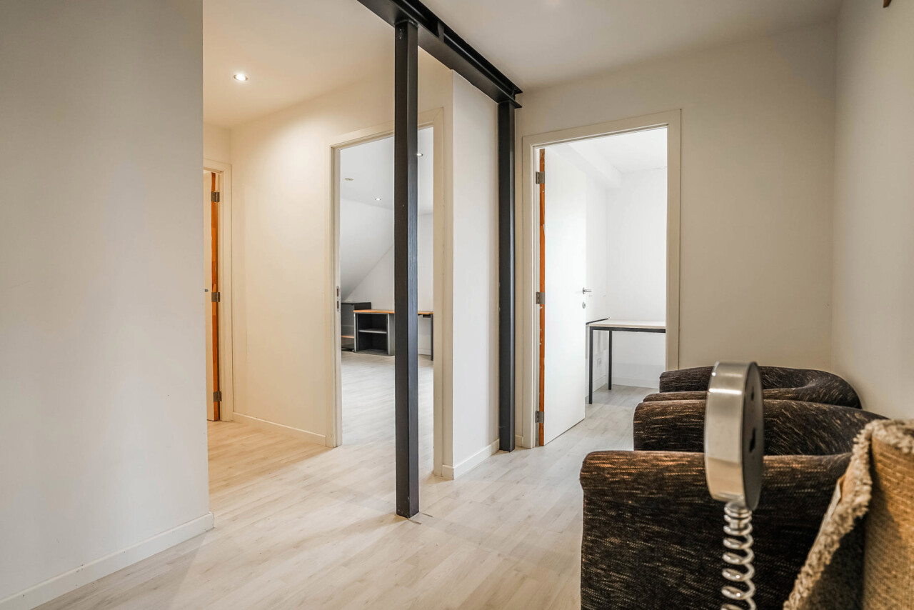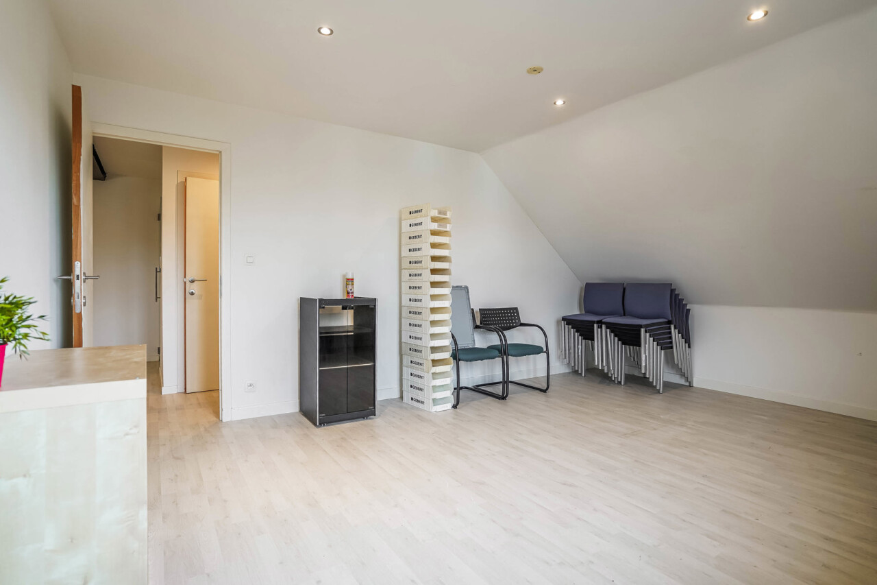 Ben je op zoek naar een gunstige gelegen, polyvalente werkplek? Deze kantoor- of praktijkruimte op de 1ste verdieping is ideaal voor vrije beroepen of zelfstandigen die op zoek zijn naar een verzorgde en onmiddellijk beschikbare werkplek. Via de gezamenlijke inkom en wachtzaal bereik je de trap naar boven, waar de drie aparte kantoor- of praktijkruimtes terug te vinden zijn. Deze afzonderlijke kamers bieden tal van indelingsmogelijkheden, ideaal voor bijv. consultaties, behandelingen, vergaderingen of administratief werk, geschikt voor o.a. therapeuten, coaches, medische beroepen, administratieve diensten of kleine zelfstandigen. Daarnaast is er een compacte, praktische keuken voorzien en een apart toilet. Het pand wordt elektrisch verwarmd, is voorzien van airco en heeft een gunstige EPC-score (B Label). Tot slot is er ook een parkeerplaats inbegrepen. In overleg met de eigenaars is het huren van de handelsruimte op het gelijkvloers ook mogelijk. Onmiddellijk beschikbaar. Inclusief gemeenschappelijke kosten en inclusief provisie voor verbruik water/elektriciteit. Bezoekaanvragen via mail naar info@immorottiers.be.